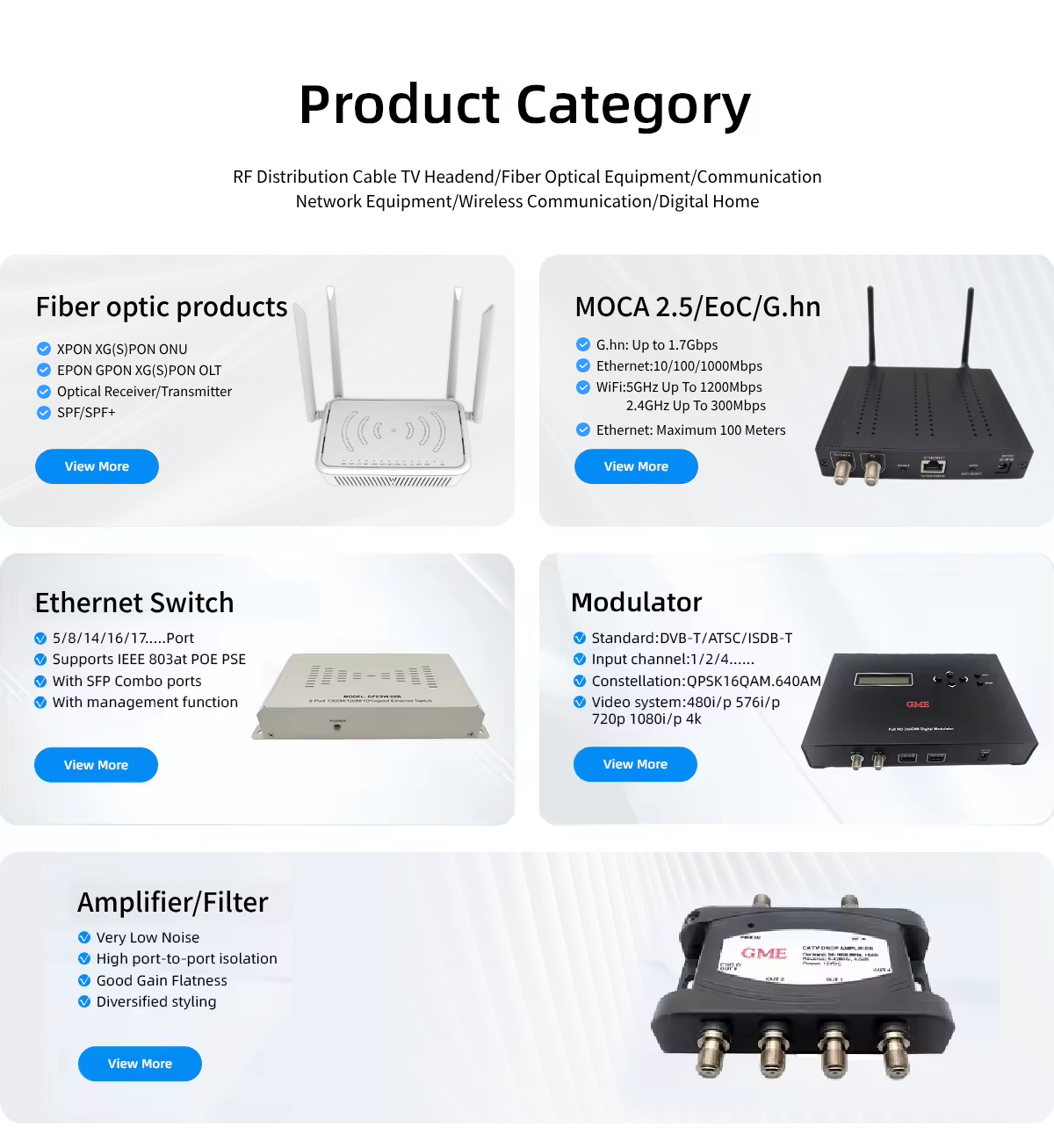 Produk utama: Headend TV kabel distribusi RF, peralatan serat optik, peralatan jaringan komunikasi, komunikasi nirkabel, rumah Digital